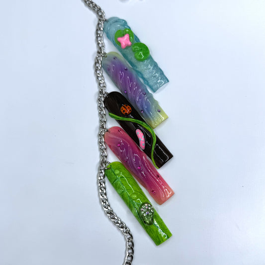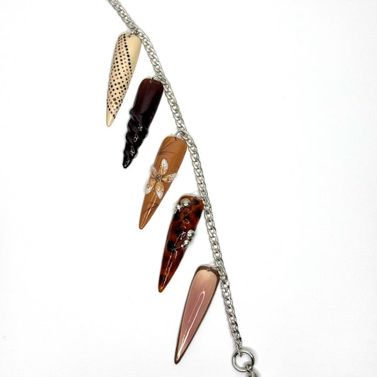 Elevate your bag game with our custom handcrafted nails. Each set includes five unique nails to add a touch of style to any bag. Don't settle for basic, personalize your look and make a statement with these versatile and unique accessories.